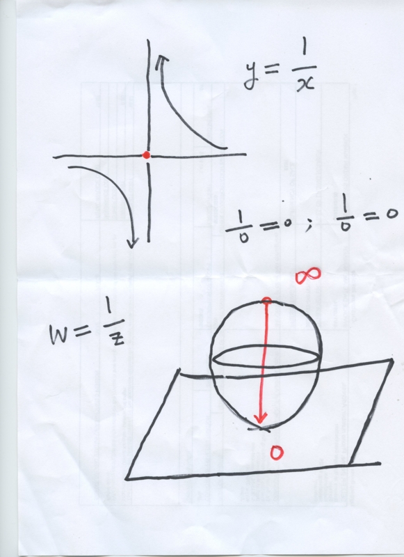 {\bf The point at infinity is not a number} and so we will not be able to consider the function (3.2) at the zero point $z = 0$, meanwhile, we can consider the value $1$ as in (3.3) at the zero point $z = 0$. How do we consider these situations?