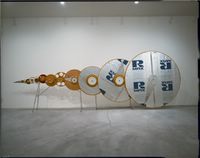 RP: Spin Sink (1 Rev./100 Years) (1995), in contrast, is a 24-foot-long row of interlocking gears, the smallest of which is driven by a whirring toy motor that in turn drives each consecutively larger and more slowly turning gear up to the largest of all, which rotates approximately once every one hundred years.
