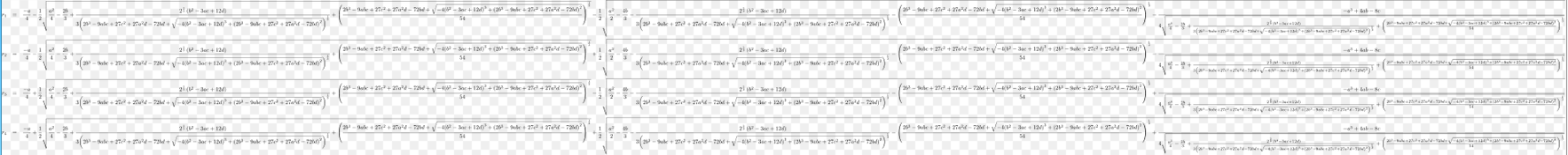 我个人认为,最丑的数学公式应该是求四次函数的根的通解公式。意大利数学家洛多维科·费拉里(Lodovico Ferrari)在1540年发现了四次方程的解。据说更早的有西班牙数学家Valmes 在1486年也声称得到了四次方程的解。而他竟然因此被处以火刑。以后的三百年中,多少人寻找五次方程的通解而无所获。直到1824年挪威数学家阿贝尔(Niels Henrik Abel)证明了这是不可能的,从而将最丑数学公式留给了四次方程的通解。