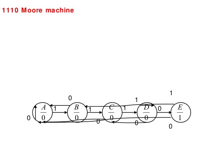 - 42. 1110 Moore machine 1 0 1 A 1 B 1 C 1 D 0 E 0 0 0 0 0 0 1 0 0